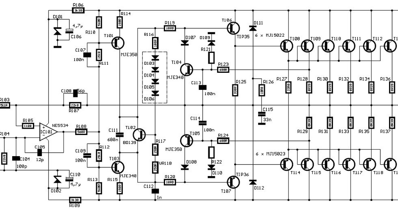 a cél: Nagyjából 2x700-900W RMS / 4 Ohm PA végfok építése, hozzávaló van dögivel, viszont nehéz a választás. Melyiket javasolnátok? 1. Ez a Yiroshi nevű szerkezet szimpatikusnak tűnik, nyákterv van hozzá, az 1500W-2 Ohm ugyan felejtős, viszont a 800/4-et elvárnám. Jobb végtranyókat tennék bele, tápfesznek +- 95V-ot ír a rajz, de gyanúsan széles az ott feltüntetett tápfesztartomány. Ki mit gondol erről a kapcsolásról? vagy, 2. Elrad PA 600, állítólag 600W-ot tud, mondjuk rátennék még egy végtranyó párt, és egy picit nagyobb tápfeszt. Ehhez nincs panelterv. vagy, (: 3. KISO 800W-os hazai végfokról is van egy rajzom, az most nincs nálam, 2x95V a tápja annak is, elvileg 7 pár 2Sa1943-2Sc5200-al. (Nálam Mj 15023-24 lenne helyettük) Mit javasoltok, melyiket építsem meg?