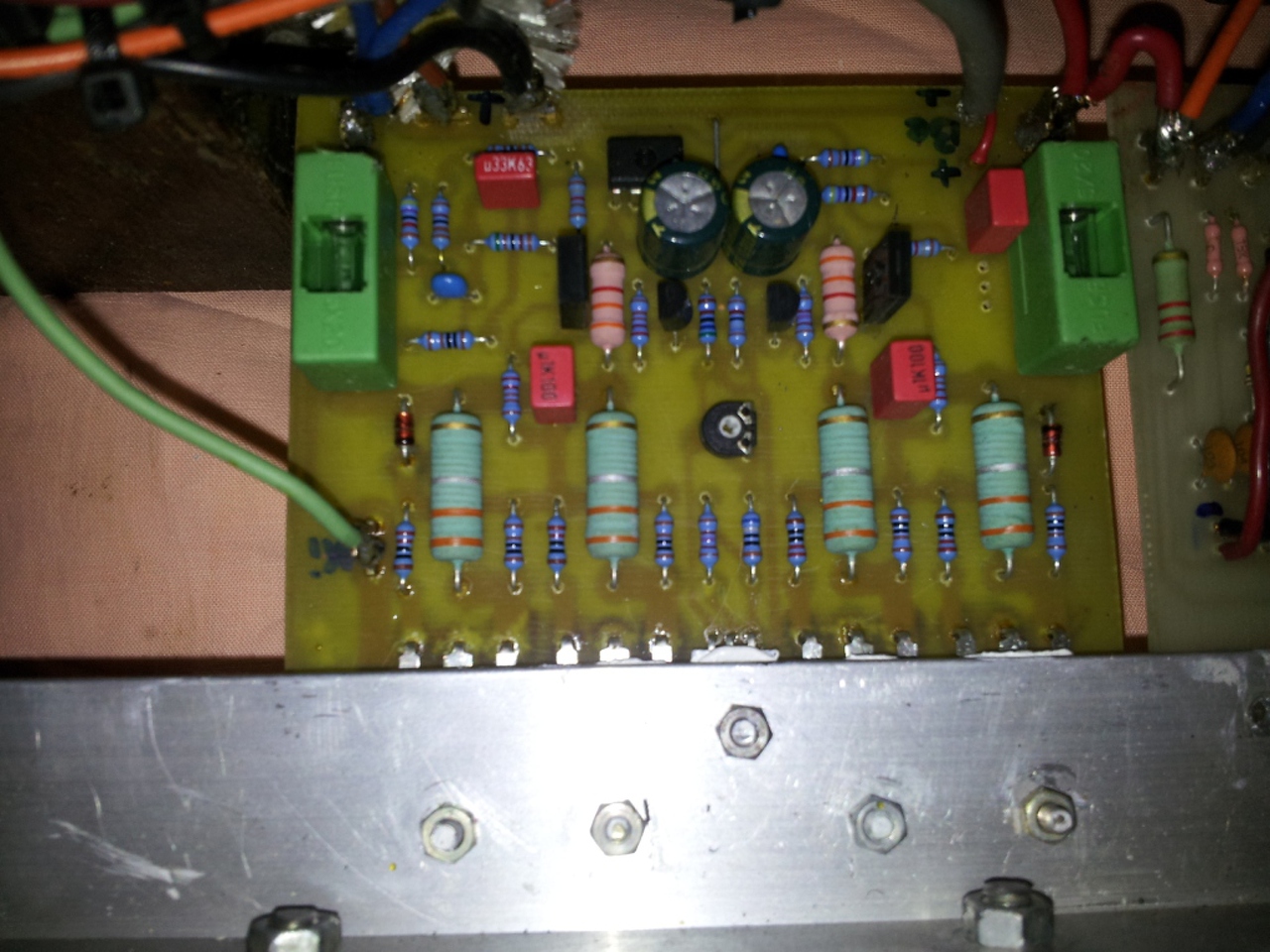 Sziasztok!Segítségre lenne szükségem.Hozzám került egy mono FET-es erősítő hibásan.Sikerült megjavítanom viszont nem tudok róla semmit.Fényképek alapján hátha valaki felismeri milyen fajta erősítő ill.milyen adatai vannak(teljesítmény,torzítás...stb)Amit lehet tudni róla 2-2 pár FET van benne(IRF92 és IRF290).A trafón 2x30volt 400watt felirat található.Előre is köszönöm.