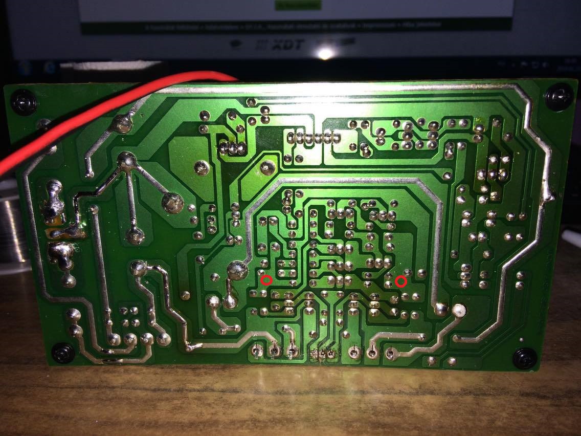 A hat tűs csatlakozón a fekete dróttal nem jó pontokat kötöttél össze, mert a készenléti lábat a gnd-re tetted, nem a + 15V-ra. Ettől a csatlakozótól jobbra lévő áramköri részlet egy zárlatvédelem. A pozitív félperiódusban a nagy emitterellenállást figyeli, és ha megnő rajta a feszültségesés, az említett készenléti láb jelét testeli, így leállítja az erősítőt. A képen figyeld meg a csatlakozón az átkötést, és úgy forraszd össze. Mindjárt egy másik képet is küldök, mit kell mérni. A hozzászólás módosítva: Jan 29, 2019