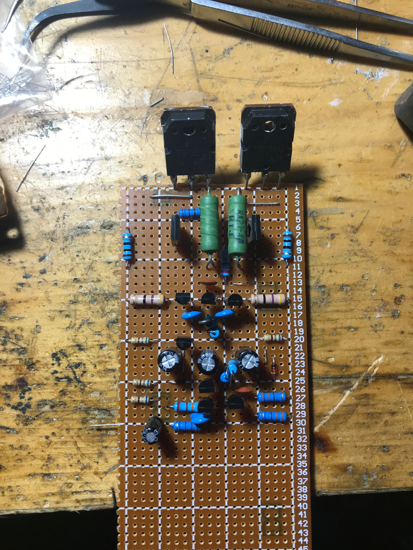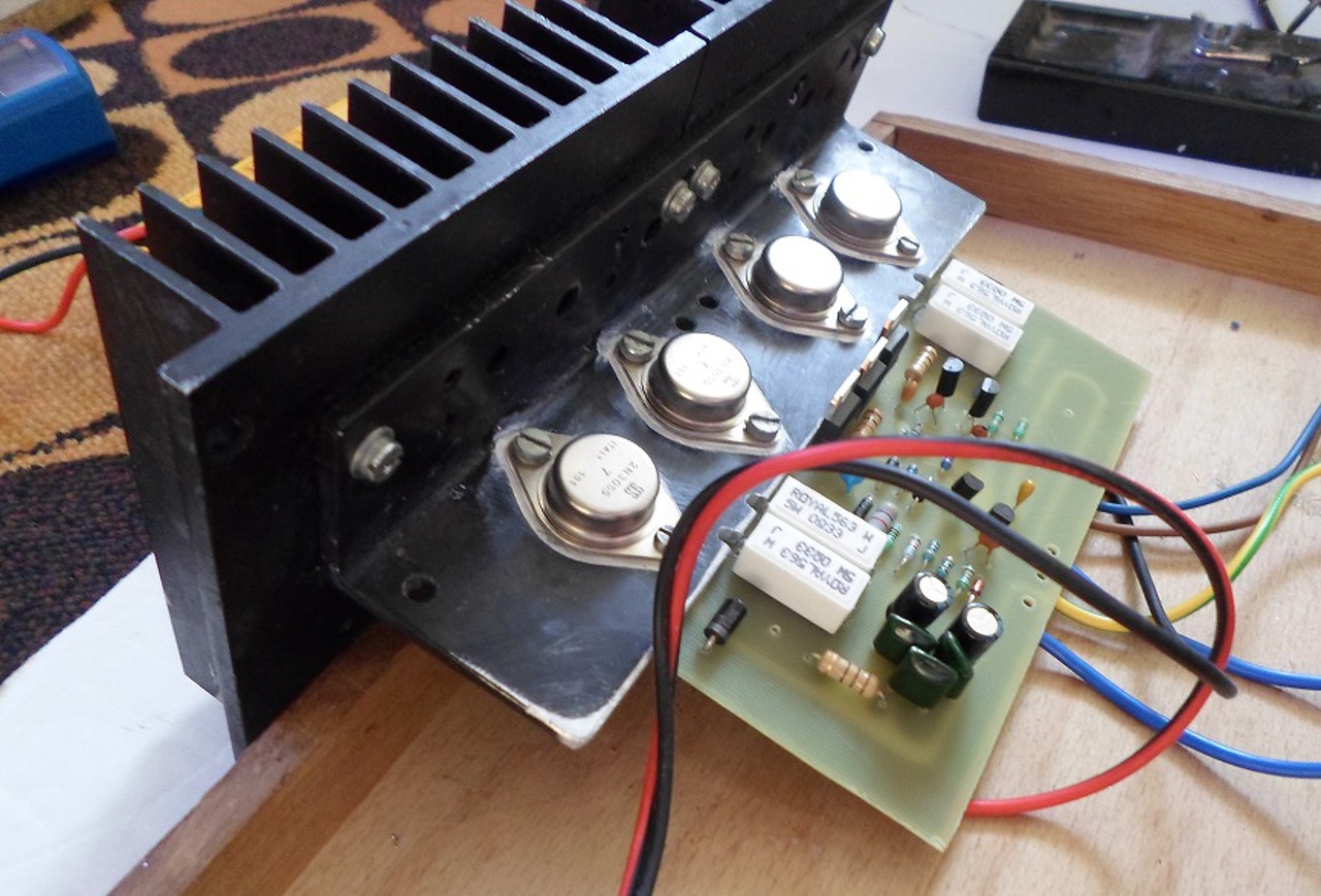 Szia! Én is ezután a rajz után épitettem egy erősitőt. Igaz csak test nyákon de pöccre indult. Meglepett engem is, hogy milyen egyszerű végfok és még működik is.