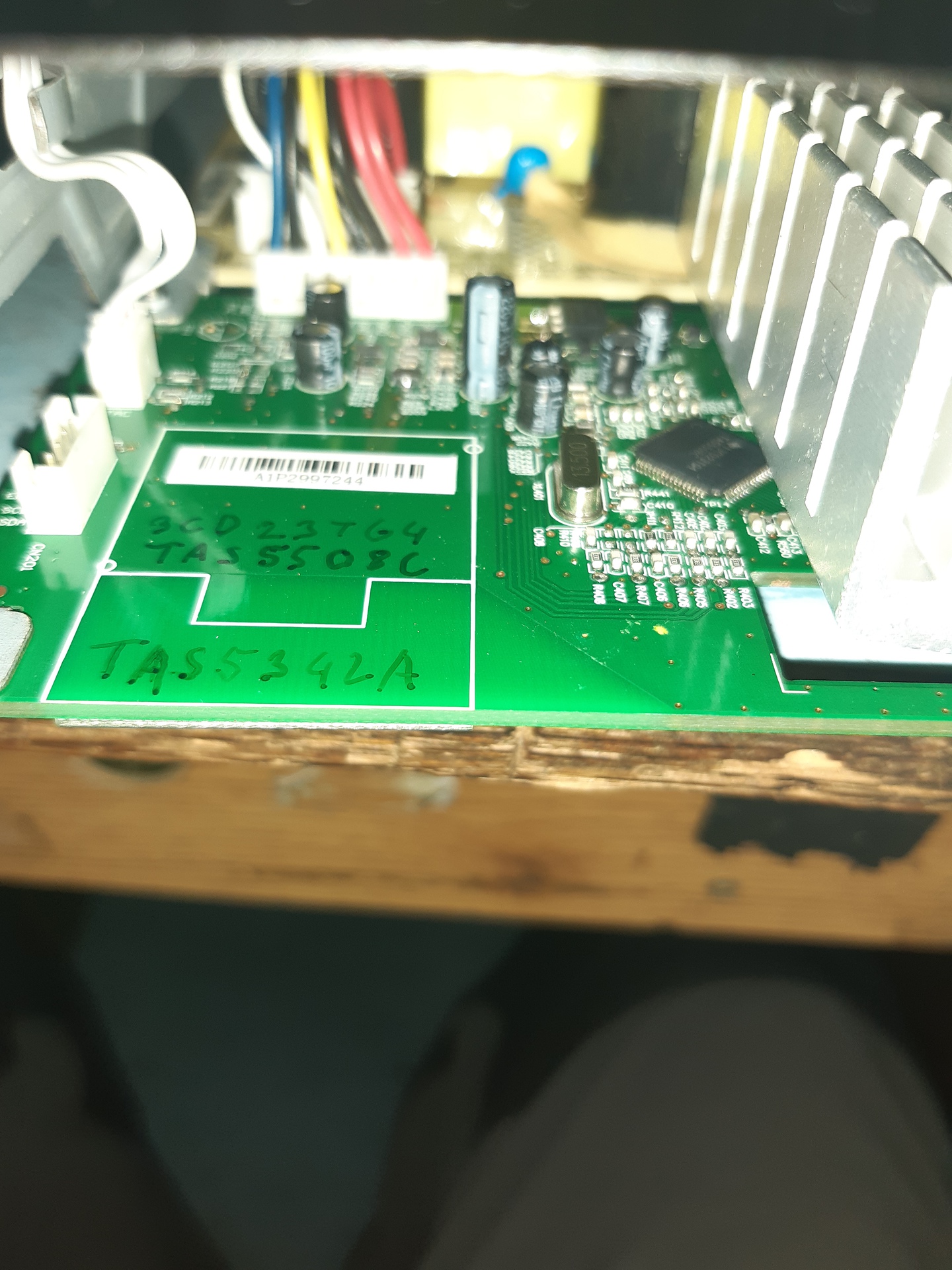 ) Van benne amúgy egy 2x29-Voltos kapcsolóüzemű tápegység, egy "D" osztályú végfok TAS5342A és egy processzor 5508C.