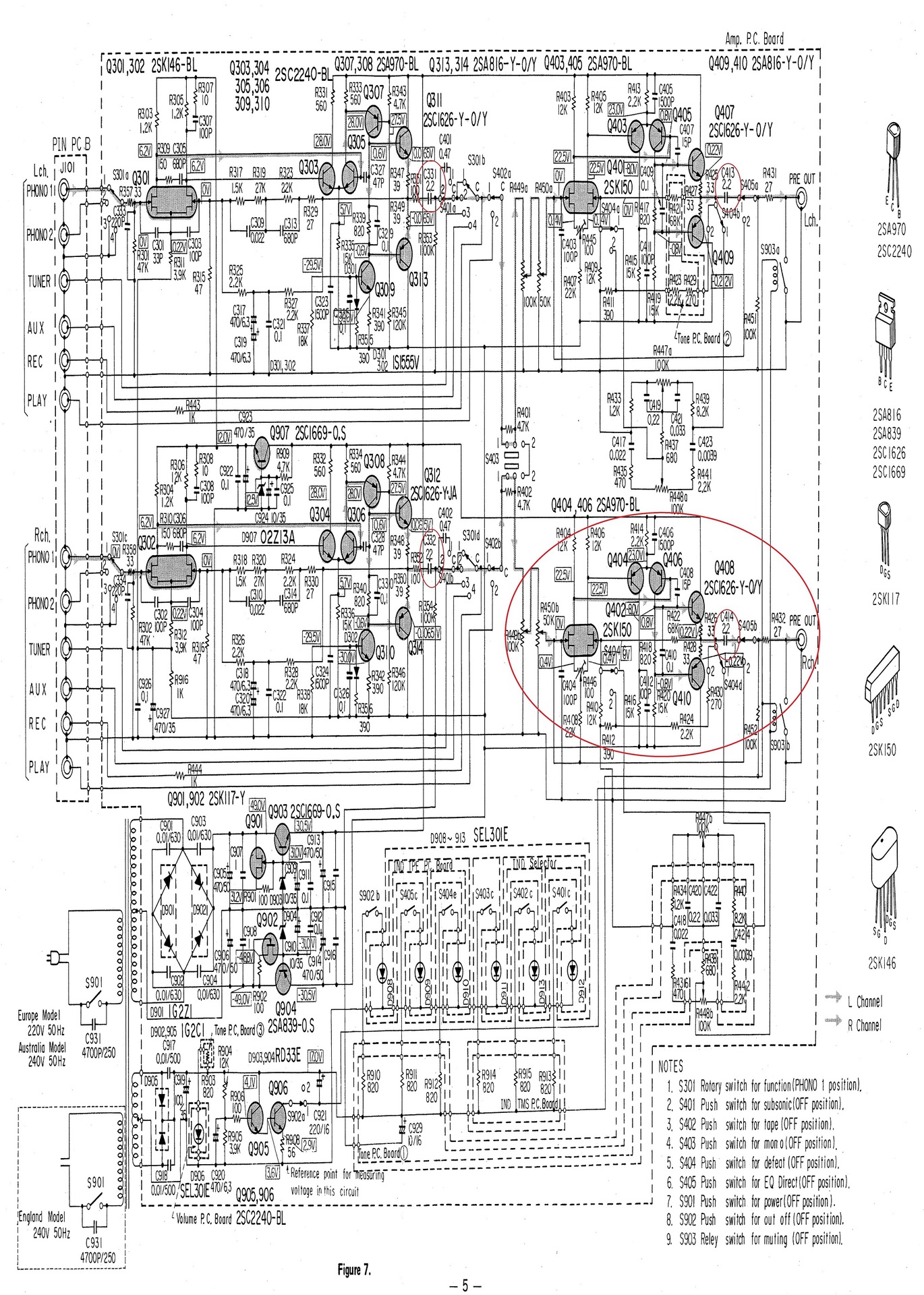 Kérnék egy kis segítséget, adott egy Toshiba_sy-c15 típusú régi élőfok. Hiba jelenség hogy az egyik oldalt erős sistergés jelentkezik, a másik csatorna rendben van. Amit eddig elkövettem, új hangerő potméter s az összes elko cserélése készüléken belül. Hangerő potméter tekerésénél menet/forgatás közben erősebb a sercegő hang, utána beáll alacsonyabb dB-vel, de megmaradt. Az érdekes még, hogy poti állástól függően jelenik meg a fehérzaj. Azaz kb: 30%-tól 90%-os állásnál, alatta felette semmi. Mellékletben csatolom a kapcsolási rajzát, s pirossal karikázva az erősítő fokozat. Van tippe valakinek mihez érdemes nyúlni első körben? Fólia kondi tönkre mehet, az idő előre hálatávval? kb: 40 éves a készülék. Segítséget válaszokat előre is köszönöm.