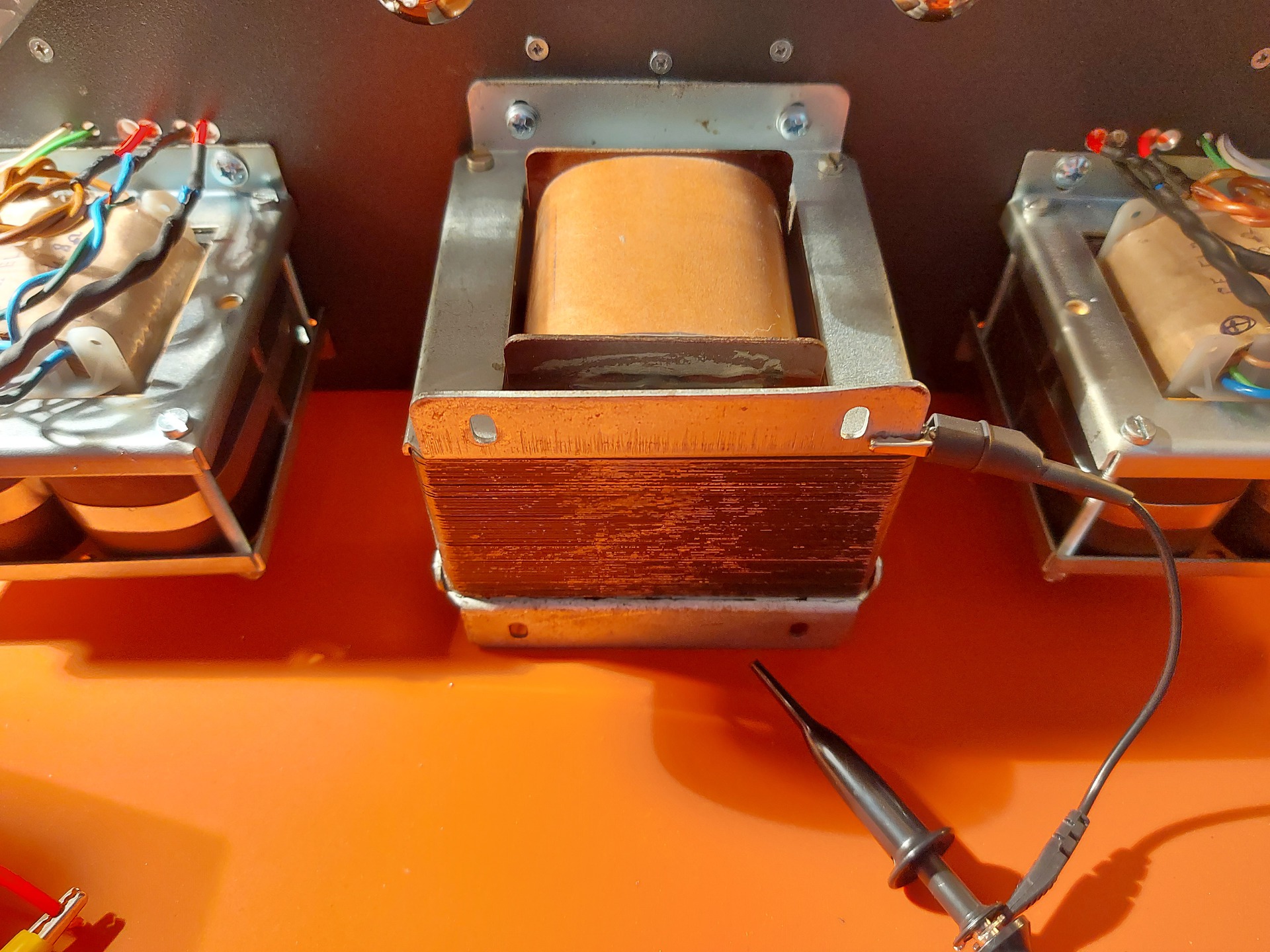 Igaz, utólag leesett. A pukkanásra akkor elég lenne egy 31seces késleltetés ami 1 seccel később kapcsolja rá az erősítőt a hangfalakra? + még nem írtam de majd most. Brummal kapcsolatos problémáim is felmerűltek. Csatoltam egy képet. A középső trafó (táptrafó) és a kimenőtrafók között 46mm van és lehetséges-e az, hogy olyan erős mágneses szórása van a táptrafónak hogy amikor még nincsen anódfesz a kimenőkön, attól még azokban keletkezik egy kis feszűltség és ezt alapból hallom a hangfalakon...?? Ezt vas árnyékolással meglehet-e szüntetni? Mondjuk 1-2mm vastag vaskalitkát kap mindhárom trafó és így az előerősítő csövekre sem fújna rá?