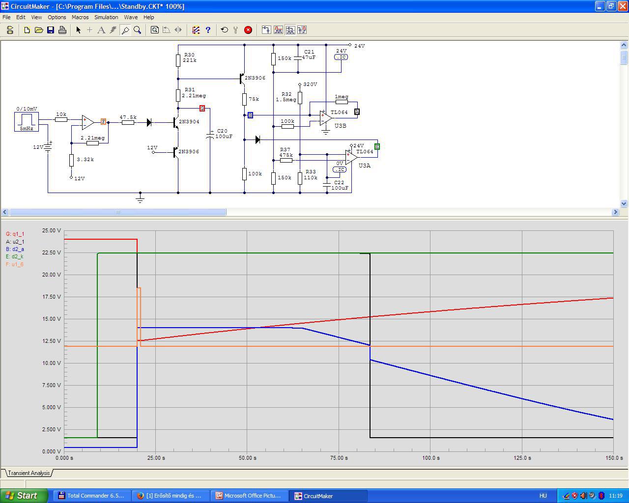 Ami viszont nálam is kiverte a biztositékot, nézd meg hogyan táplálják a relét. Ma nem hiszem, hogy lesz idöm tovább piszkálni a dolgot, de a relé körül fog kelleni nézelödni. Mert amikor áram alá helyezem az áramkört, csak egy bizonyos idö után huz meg, és ugy marad. Azaz maga a kapcsolo áramkör müködik, de valami a bekapcsolás után pár másodperc után változik meg, és ugy is marad. A másik müködö erösitö is a bekapcsolás után a relé meghuz ( pirosrol zöldre vált, majd ujra pirosba / Standby). A rossz viszont csak pirosrol zöldre billen és ugy is marad. Ott valaminek vissza kellene billenteni jel nélkül az áramkört. Ezt még nem volt idöm kibogozni. Meg tudnád csinálni a Standby áramkörön a DC szinteket? Kösz.