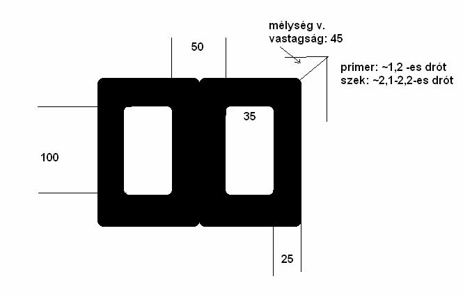 2*36 voltot ad és át akarom tekercseltetni. De sajna nem tudom hogy mekkora teljesítmény hozható ki belőle a trafóméretező progi meg csak 101 wattot adott ki erre. csatoltam képet és méreteket a vasmagrol. Erősítőbe lenne eddig 4*100 as quad 405-öst hajtott ezért ennyi a fesz. nekem olyan +-90 volt környéke kell azért tekertetném át. kösz a segítséget!!!