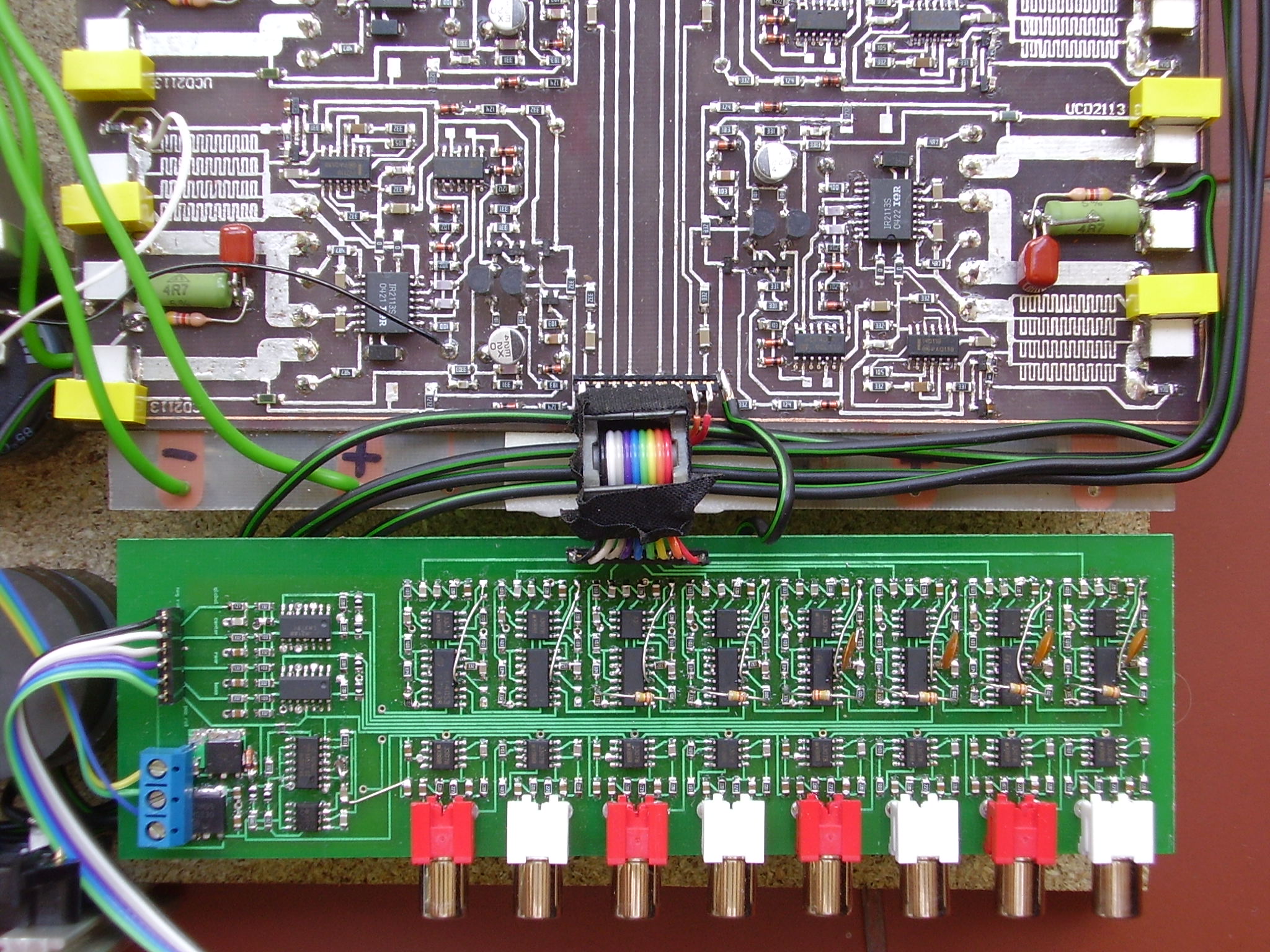 6 db különálló csatornát kellene egyszerre szabályozni! (5.1-es erősítő) Én saját megoldást találtam rá (a csatolt képen a zöld nyák), és a minősége kifejezetten jó, de egyszerűnek ezt sem mondanám, ráadásul kell bele egy duál 700 MHz-es műveleti erősítő csatornánként.