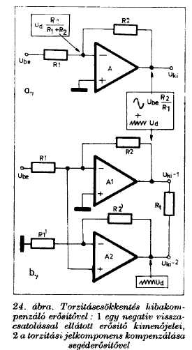 Ja! Hogy ez a gyakorlati kapcsolás. Ebben viszont már nincs benne A2 hibakorrekciója. Igaz, ezzel már a pozitív visszacsatolás problémája sincs. Ez már működhet tökéletesen, csakhát kevés torzításjavulást hoz, ha végfokot csinálunk belőle. Előfoknak tökéletes, mivel A2, a szinte nulla kimeneti áram miatt nem torzít egyáltalán.