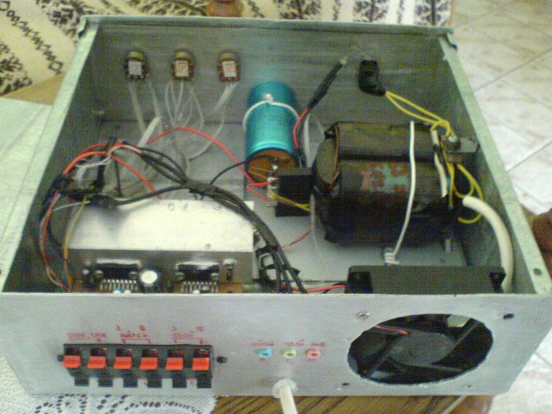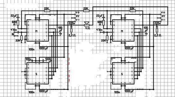 Sziasztok! Megépítettem az alábbi kapcsolást... Tökéletesen működik! Fűt mint egy kályha, de baromi nagyot szól! Ajánlom mindenkinek! Ja és TDA7293-mas ic-k munkálkodnak benne.