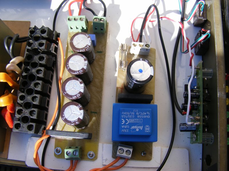 A toroid szekundere gyárilag 2x33 v -os volt. Én már letekertem beleőle kb. 4-5 éve, hogy 2x12-v legyen. A szekunder egymásra volt tekerve gyárilag, most egyszerre tekertem a 2 szálat, csapolásokat tettem bele 9, 12, 17 voltra. Bekapcsoláskor van egy kis hangja, egy halk brrr, de ez azzonnal megszűnik, teljes kussban van a toroid. (új korában is megvolt a bekapcsoláskori Brrr) Honnan tudom, hogy túl van gerjesztve? Pár kép az erősítőről: