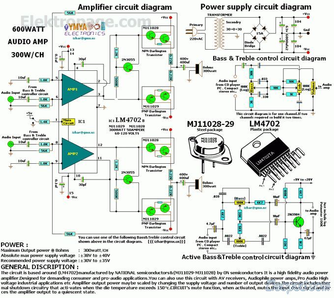 Találtam egy kapcsolási rajzot.Számomra hihetetlennek tűnik,hogy ez 300w-ot tudna 8 ohm-on,40V tápfesszel.