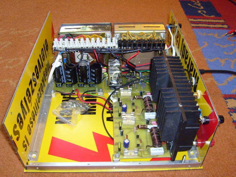 Építettem egy 2x50w teljesítményű tranzisztoros erősítőt Csináltam az egészhez egy dobozd itthon !! van benne hangszóróvédelem , még rakok bele egy előerősítőt is majd . Az egész 100w erősítő 2 db 160VA trafóról megy!! Itt van néhány kép