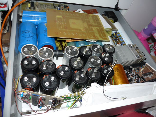 Nálam is pihen pár a fiók mélyén (az "apró" csavarosak 10e µF 63V).