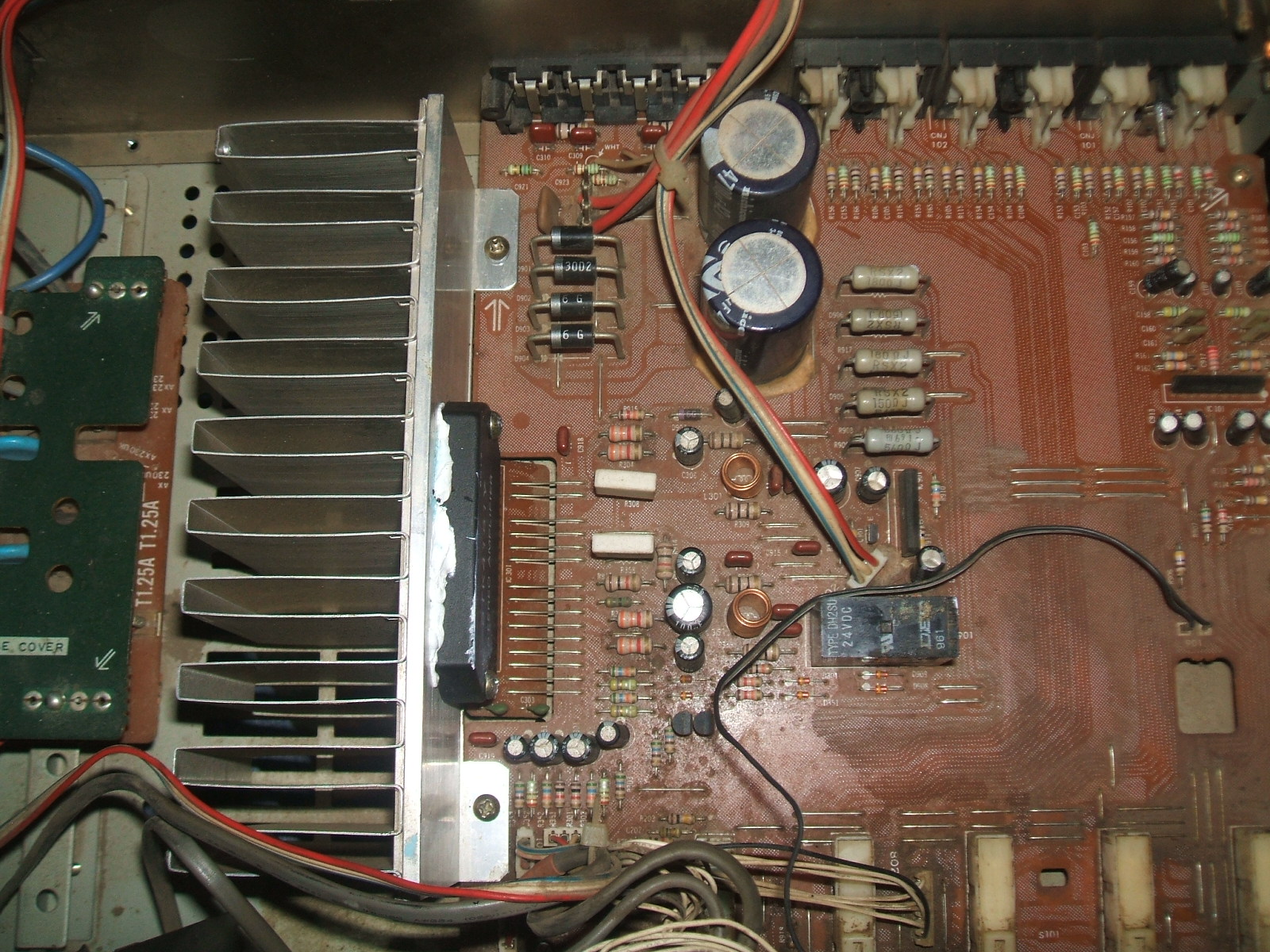 Életem legelső erősítője volt ez. Azt kell tudni róla, hogy germánium tranzisztoros a végfokozat, ami sajnos jelent némi kellemetlenséget melegedés kapcsán (90 fokos záróréteg felett elhalnak, ez a bordán kb. 60 fok maximum) és időfüggő dolgot. Mivel a bordája a sík hátlaplemez, ezért nagy dolgokat nem szabad várni tőle, de hozzá illő hangfalakat tisztességesen megszólaltat azért. Ami probléma szokott lenni nála, az a fiziológiai hangerőszabályzás, meg a forraszok, illetve a nagyfrekis kompenzálást végző fóliakondik. Főleg ezutóbbira gyanakszom, ha itt hiba van, akkor gerjedésnek indul a végfok, és ettől fullad meg, ami ha jól emlékszem, nem a tápegység felől keletkezik, hanem bemenőjel-határolás miatt, ami végeredményben a végfokokat védi extrém disszipációtól. Szétszedni nem nagy ördöngősség, az isostat kapcsolók forraszait érdemes átnézni, a fóliakondiknálsokszor alattomos oxidáció miatt vész el a kontakt, én az összes forraszt végignyálaznám rajta, nem keresném a ludast. A végfokpanel baloldalt van, jól szeparálva. Egyébként gusztusos végfok belülről, szépen van megcsinálva és a hangja, bár halovány emlék, egészen kellemes volt (miután a végfok nagyfrekis kopmpenzálását enyhítettem