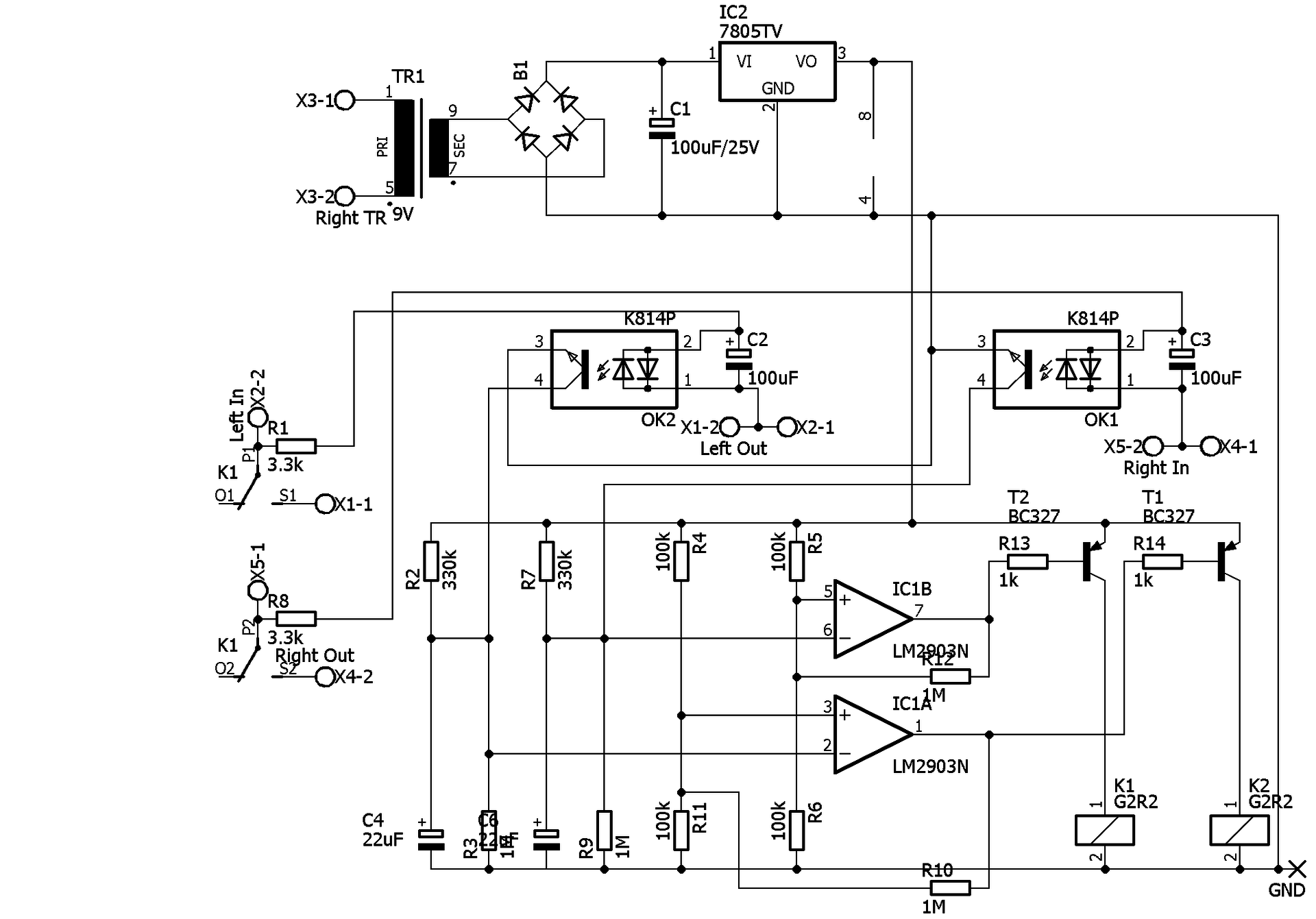 Amúgy pl. 100µF/6V SMD kerámia kondiként is elérhető, az kicsi, és polaritás független. Abban látom inkább a kapcsolás gyenge pontját, hogy lehetne gyorsabb.. Az lenne a cél, hogy ha pl. a végfok kimenetén, egy hiba miatt, hirtelen megjelenik a DC táp, akkor minél hamarabb kapcsoljon le a védelem. De itt az optocsatolónak még ki kell sütnie a komparátorok bemenetén levő kondit is, hogy a védelem aktivizálódjon (mondjuk ez egy plusz tranyóval felgyorsítható lenne).