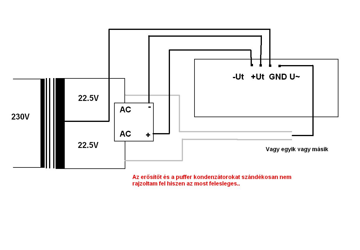 A csatolmányban látott táphoz használható a te módosított kapcsolásod? Az erősítőben így van csinálva a táp.. Üdv