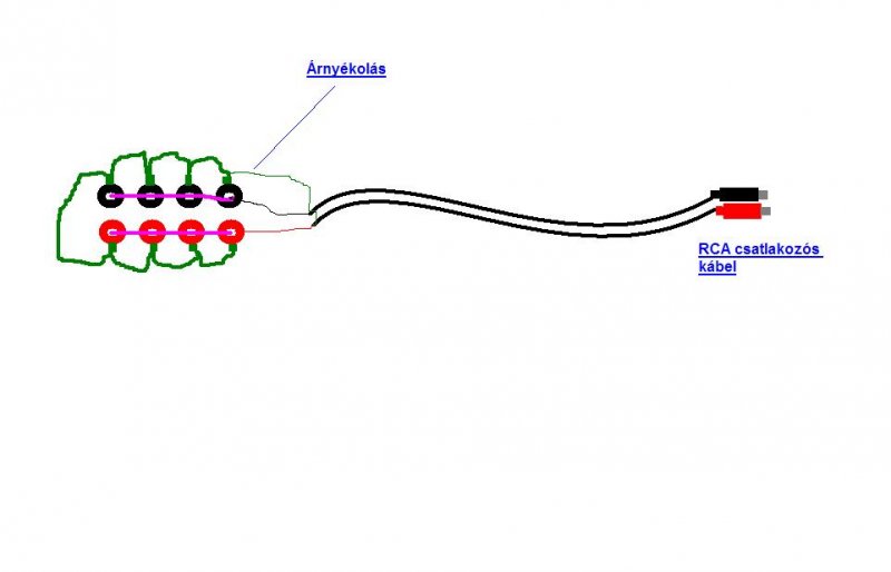 Összekötöd a rajz szerint, az rca csatlakozót kis dobozkába teszed és kész.