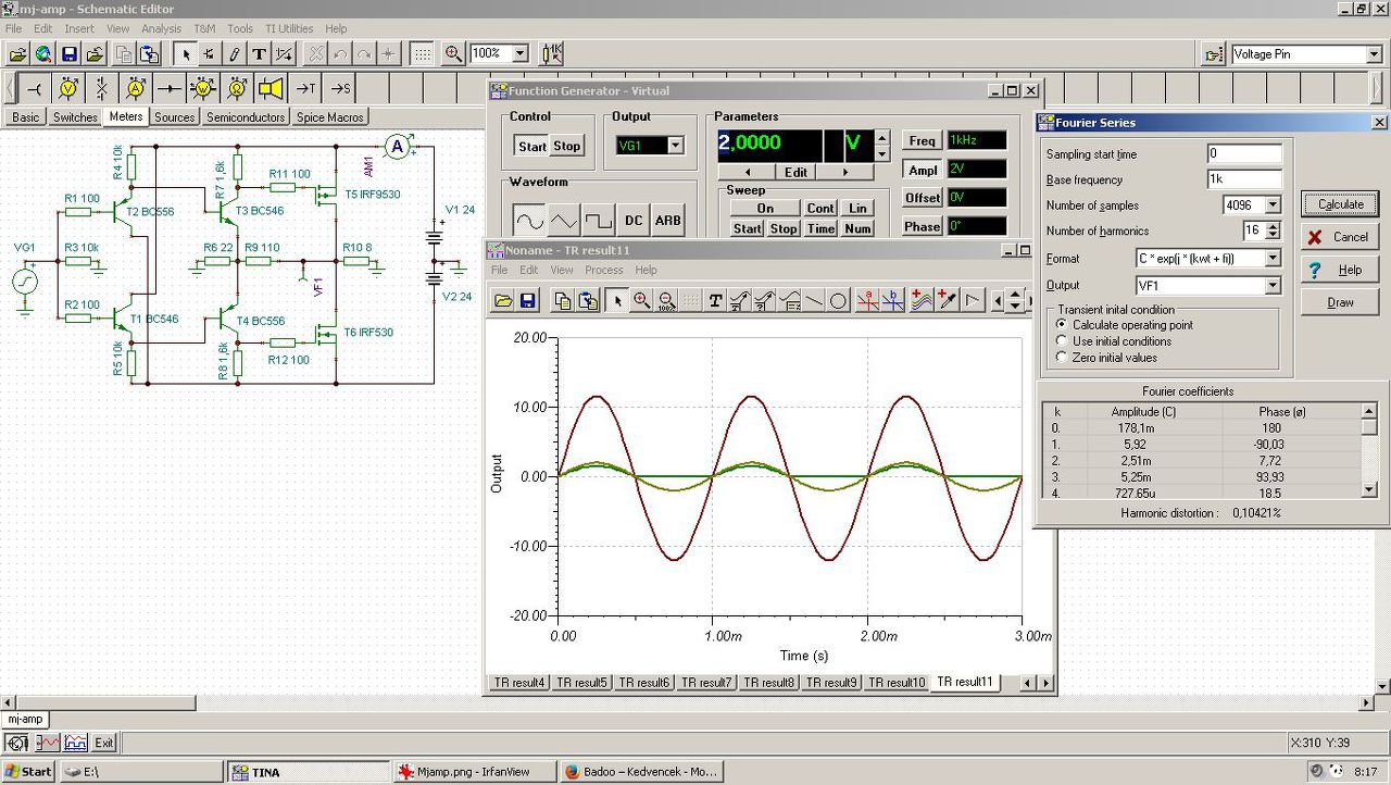 Mindegy, én azért tuningoltam még egy kicsit, úgy gondolom, ez már magáért beszél. THD = 0,000025% 1W -on, 40W -on pedig 0,072%
