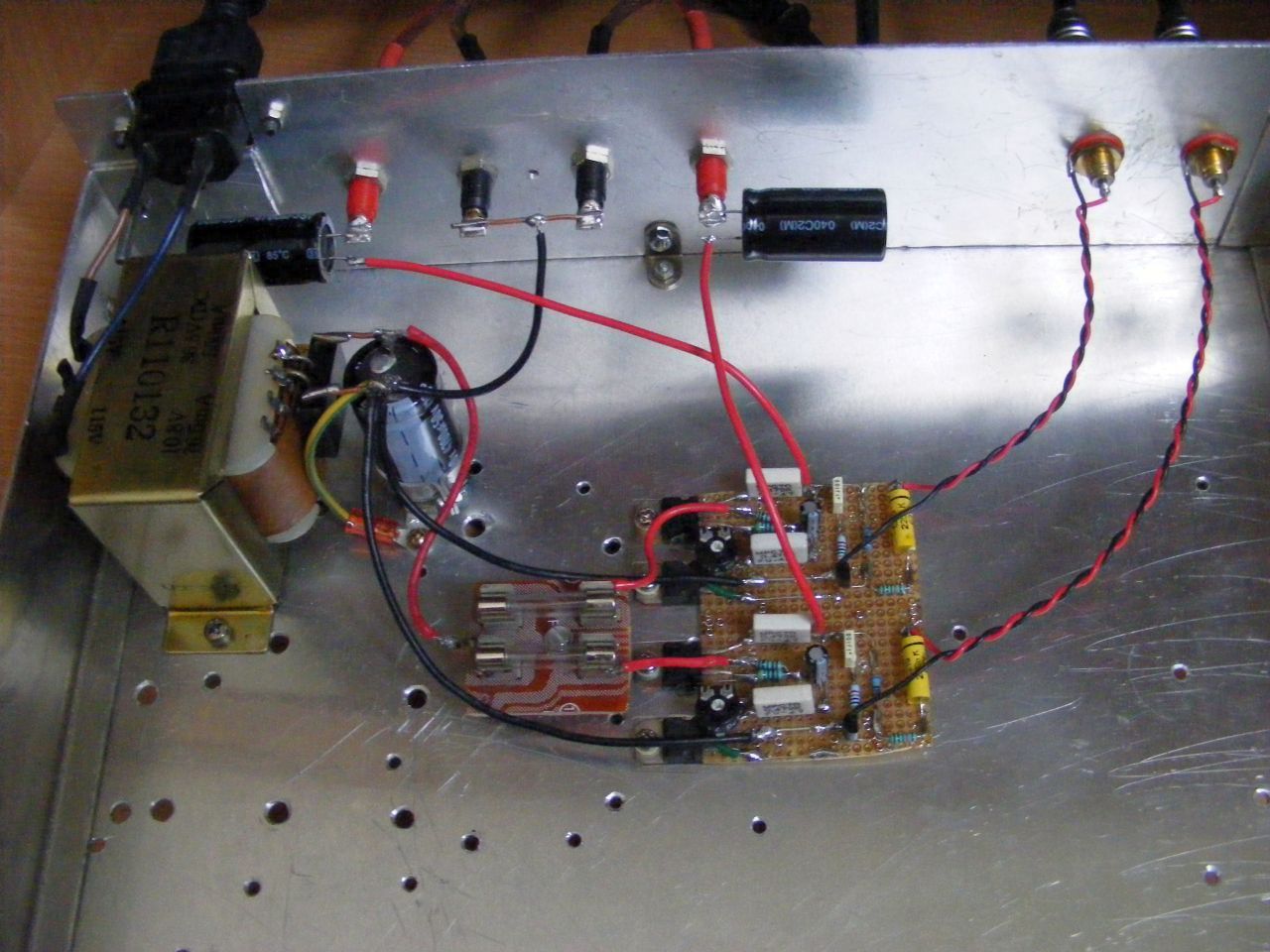 Legalább jó nagy az alaplemez, és el tud hülni. A kicsatolók a piros banán hüvelyekre vannak forrasztva.