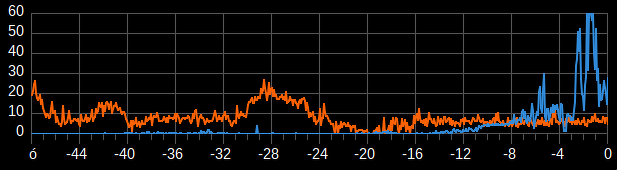 Némi utánlövés a témához. A radar alapú esőérzékelőm így látja a hóesést. Kék: havazás, narancs: szél.