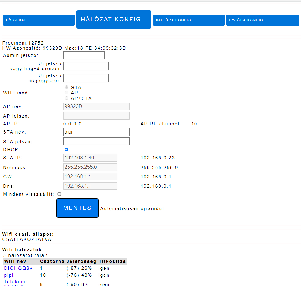 Ahonnan én indultam ESP8266-al (https://www.john-lassen.de/en/projects/esp-8266-arduino-ide-webconfig) sajnos már megszűnt, de itt az 5.oldalon van a https://www.esp8266.com/viewtopic.php?f=29&t=4060&start=16 ESP_WebConfig_Master.zip meg a további oldalakon(9) (irrigation1..5.zip) Az biztos hogy át kell rágni kicsit a kódot, de könnyen megérthető a mikroajax hogyan tölti ki a weboldalt "utólag". Amit ebből barkácsoltam, utána nem volt nagy cucc áttenni esp32-re sem. Webszerkesztővel szépen megszerkeszthető a html, utána mehet egy konstans stringbe, vagy akárhová.... Szerintem.... A John-ra rákeresve: Találtam egy yt videót: https://www.youtube.com/watch?v=3lBCmOHnF3w Sokan felhasználták: https://www.instructables.com/Desktop-Ring-Clock/ https://github.com/ancalex/Desktop_Ring_Clock https://github.com/thunderace/ESP_WebConfig A hozzászólás módosítva: Máj 22, 2023