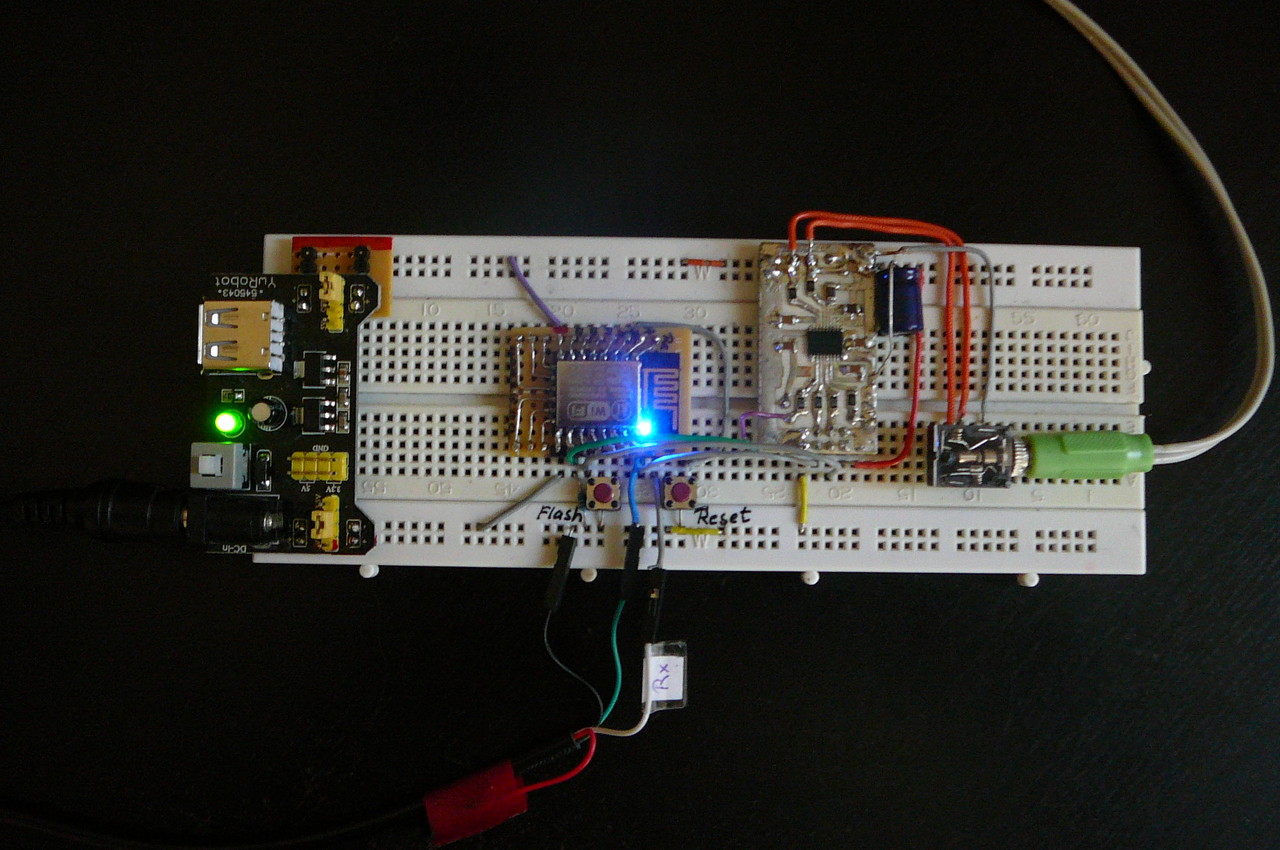Nem csak ez az öröm, hanem hogy sikerült működésre bírni az esp-sdk egységet. Sokadszorra próbáltam linuxos, windowsos változatokat, de nem jártam sikerrel. Végül az "esp-open-sdk" alatt beindult az ESP8266_MP3_DECODER, pontosan én sem tudom miért, és kisebb igazítások után meghallottam a zenét. Bekapcsolási ideje egész jó, áram alá helyezés után 10-12 sec múlva már szól a rádió.
