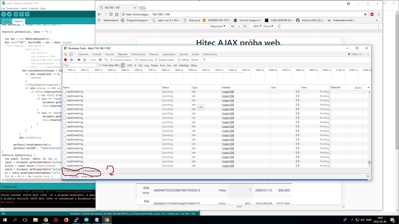 Ez előtti lépés pedig az hogy a böngésző címsorába írom az esp felé küldött üzenetet, simán megjelenik a válasz a böngészőben, és meg lehet nézni az időt is ami a válasz megérkezéséig eltelt. GET nél persze.