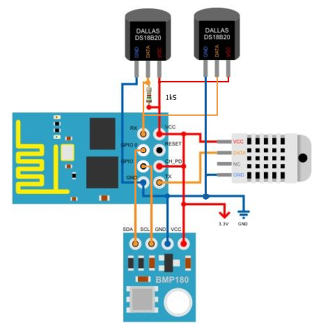 De szerintem vegyél nagyobb modult, esp03-07-12 ezeknek jóval több lába van... Vagy ha ügyes vagy akkor a csatlakozóra nem kivezetett ESP8266 chip lábára is forraszthatsz drótot, és máris van szabad io lábad (a hőskorban még én is csináltam) valami ilyesmi