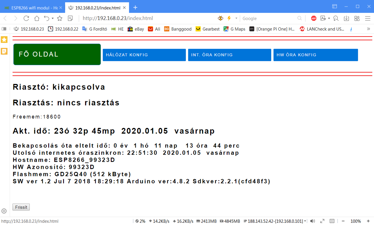 Nos, kész rendszerem fut (NAS+java server, termosztát modul, ajtó nyitó modulok, stb.). Szóval ehhez szeretném hozzáreszelni az ESP-t, ha lehet. Ha nem, akkor maradok az eddig működő megoldásaimnál. Mivel azonban készítettem ESP32 modullal webes lámpavezrlő rendszert, ami igaz serverként üzemel (évek óta, hibátlanul), nem akarom elhinni, hogy az ESP8266 nem működik megfelelően clientként. Inkább valahol az én hiányos ismeretem miatt a hiba. Sztem...... |
