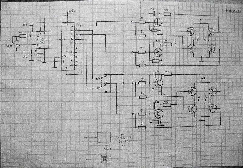 Hogyan nézne ki a számláló?Milyet használjak szerinted?Meg valami kapcs hozzá,annak megörülnék.Van még egy olyan ötlet,hogy 555+4017 és a kivezető lábakra közvetlen rákötném a tranyókat.Tehát lehagynám a kondikat,csak a bázis elé tennék egy ellenállást