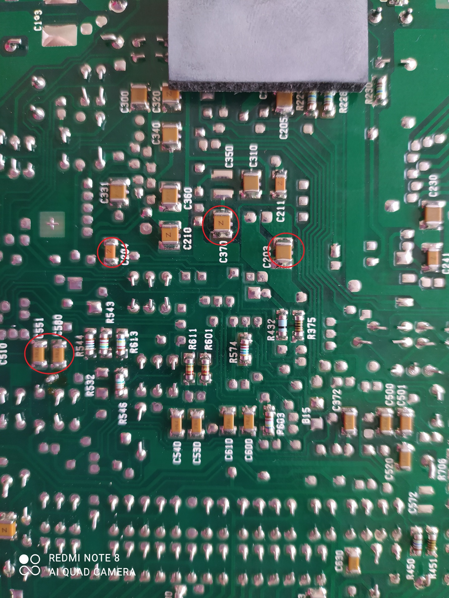 Ezek kerámia kondik ha jól értem. A képen jelöltem látható ha kinagyítod, hogy a C203-as kondin semmi adat,a C370 kondin egy Z betű,C600,C610 valami VN4 jelzés de nem biztos. Hogyan lehet ezeket azonosítani ?