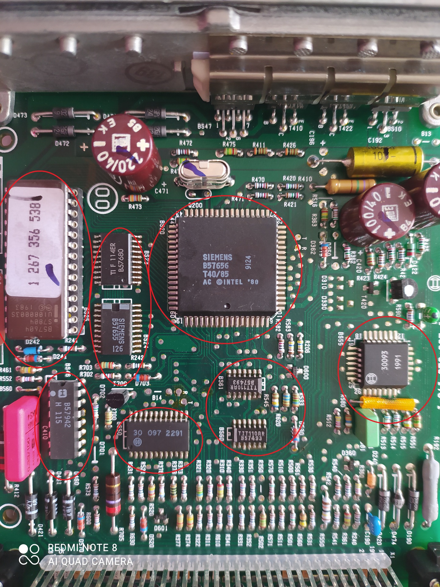 Még akkor sem tudod megállapítani, ha esetleg mindegyikhez találnál adatlapot, de ez szerintem nem fog menni, mert ezek a B57xxx típusszámok bármit takarhatnak. A bal oldalon lévő, valószínüleg EPROM pedig a program nélkül nem fog működni.