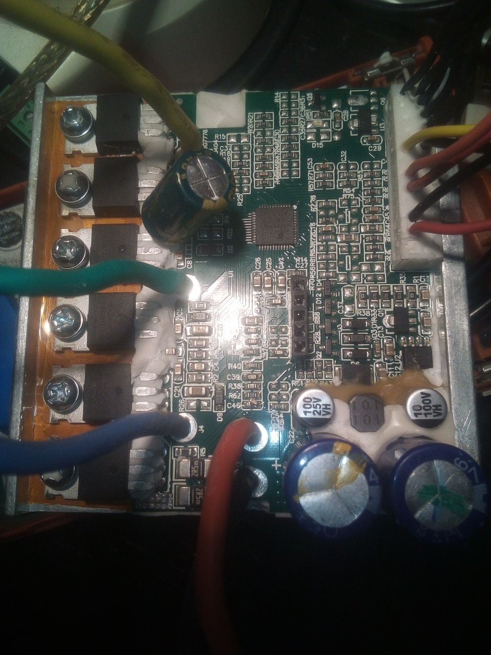 Ez is zsákutca lett,most lebontottam róla a szilikont,felteszem a fotókat,hátha valakinek ötlete támad tőlük. A sárga melletti piros vezeték megy az akku középhez az 5 kivezető kábelből.