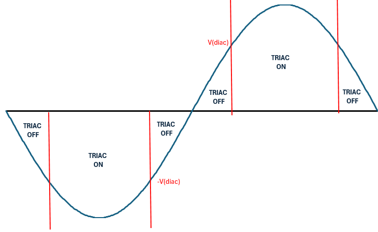 Aham. Tehát lényegében a diak beállít egy amolyan alapértelmezett feszültség értéket, ami a szinusz hullám végeit alapból levagdossa, tehát ott a triak mindenképp OFF, közte meg azon múlik, hogy a hasítás hol van (hol kapcsol be a triak), hogy mik a kondi meg a potméter állása? Pontosabban a potméteré, mert a kondi az ugye fix... Valahogy úgy, ahogy a képen?