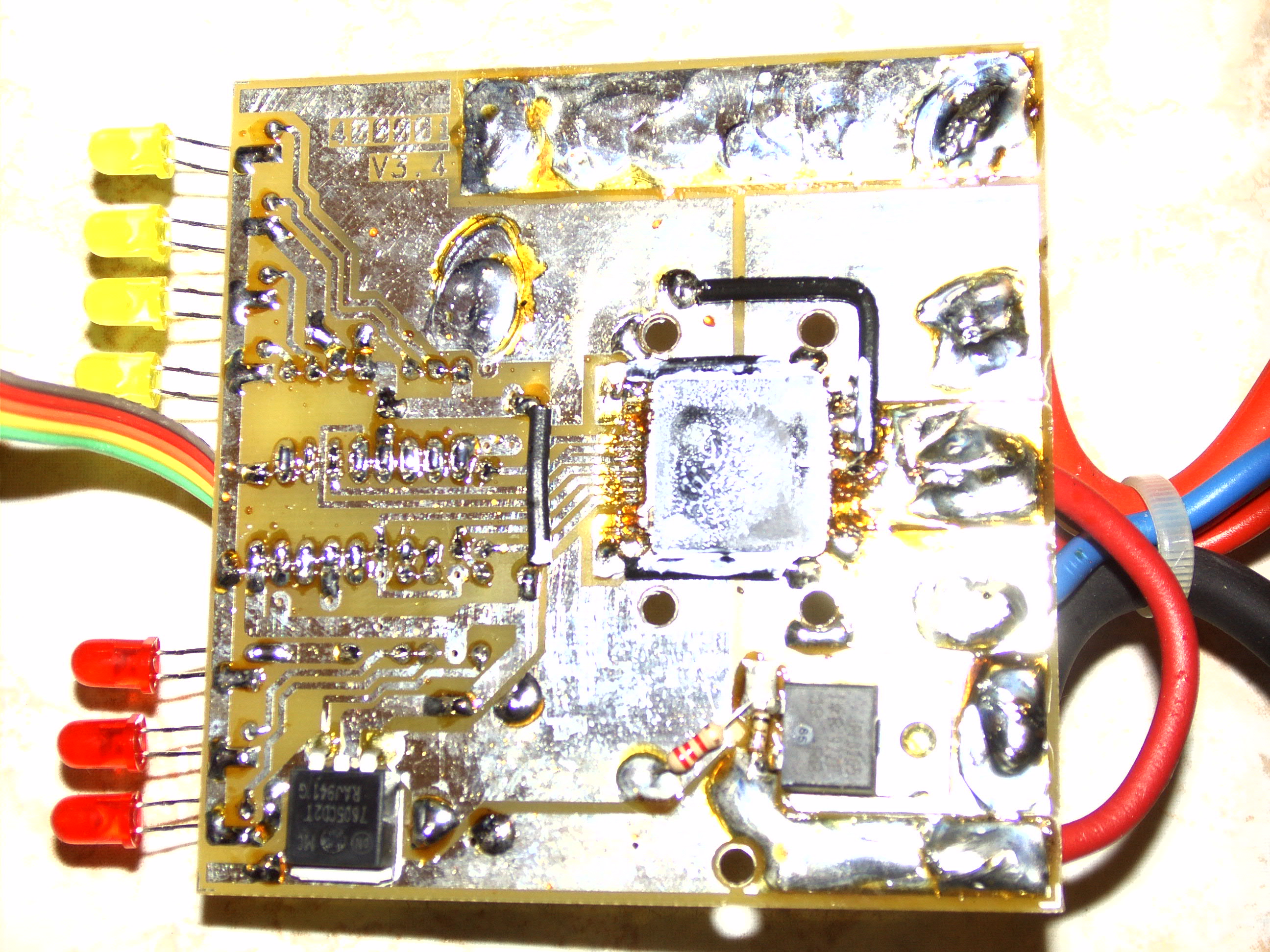 Mi lehet a panel forrasztási oldalán, a négy furat közti alkatrész? Hűtő is van rajta. Szerintem valami teljesítmény FET szerű alkatrész, mert ez egy mézpergető vezérlő, és egyenáramú motort vezérel. Üdv.