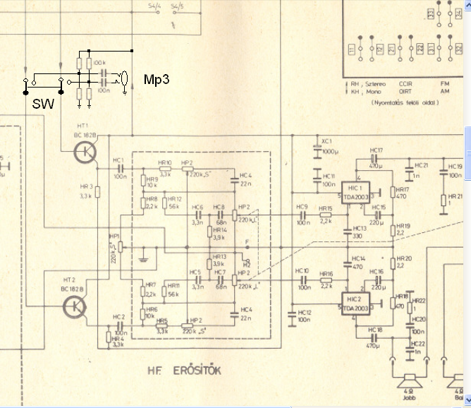 Sziasztok egy kis segítséget szeretnék kérni van egy Videoton RD 5686 OCM tipusú autórádióm, nagyon jól szól csak át szeretném alakítani valahova be szeretnék kötni egy jack csatlakozót hogy megerősítsem a telefon vagy Mp5 hangerejét, de úgy lenne a jobb hogy tudjam állítani a hangerőt és a Basszust is, meg sztereó legyen. Mellékelem a kapcsolási rajzot. Tudom hogy elég régi rádió de olyan jól szól hogy ennél maradok meg 10+10W elég nekem.