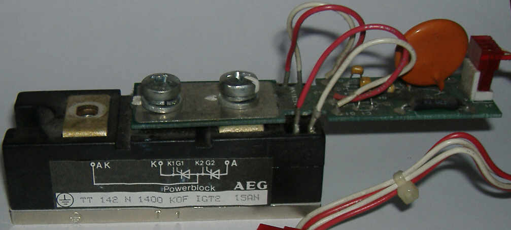 A rávázolt ábra szerint két nagytejesítményü tirisztor van benne K1 G1 - K2 G2- ön keresztül lehet megvezérelni.