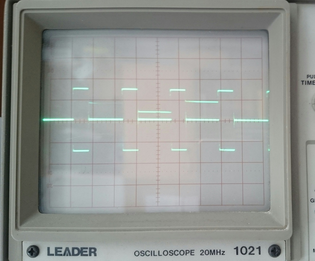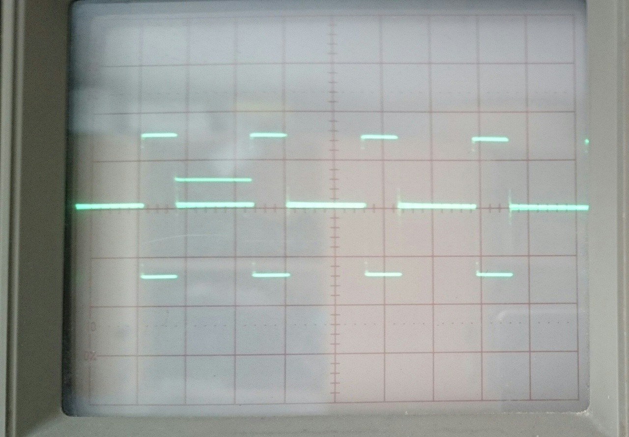Akkor jol gondoltam, ez nem DMX kimenet. Minden impulzus egy csatorna. Idomultiplexelt analog jel. Valahogy biztosan jelzi, hogy melyik impulzus melyik csatornahoz tartozik.