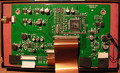 Pár éve meghalt egy 2 DINes GPS-DVD-WIN CE-s autós készülékem és most a kezembe került. Az egyik képen piros kőrrel jelölt részen robbant le egy alkatrész (feltehetően FET) fóliával együtt. Bekapcsoló gomb nyomásra megjelennek a különböző tápfeszek a panelokon, ventillátor indul ( 12V, 9V, 8V, 5V, 3.3V) de képet nem ad, hang nem jön belőle. Se rajz se infó nincs hozzá (kicsi kínai). Amit tudni szeretnék: hogyan lehetne felhasználni belőle részeket (pl.:WiFi panel, display 800x480, esetleg a processzor-rész)? A végfok (4x45W) és meghajtója biztos menthető.