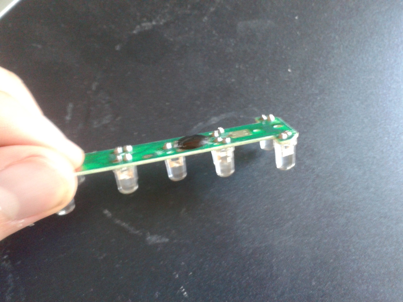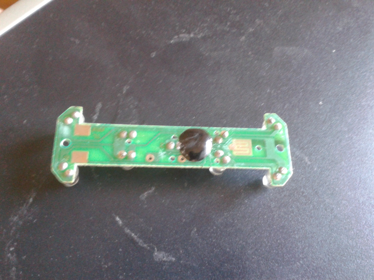Az egy IC, valószínűleg valamilyen egyszerű mikrokontroller, csak tokozás nélküli (COB, Chip On Board). Az intelligens (gombnyomásra változó fényeffekteket adó) kerékpárlámpák szinte mindegyikében ilyen van.