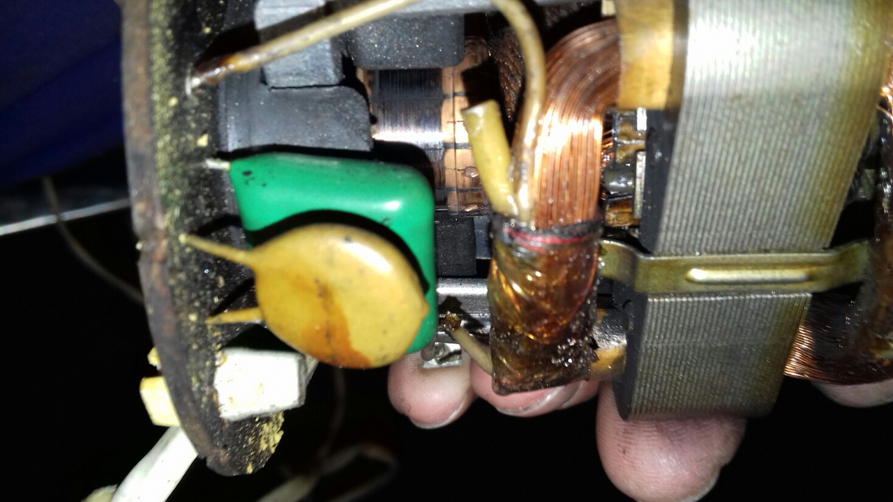 A barnák Y kategóriás kondik egyenesen a Szovjetunióból. Értékük 47-56nF között mozog. Y2 kondenzátorral helyettesítheted őket, a két szénkefén lévő fontos, mert ha megnézed a kommutátort látszik, hogy "gyönyörű" tűzgyűrű lehetett körülötte. A kis szeletek közti réseket takarítsd ki, mert nagyon cefet állapotban vannak.