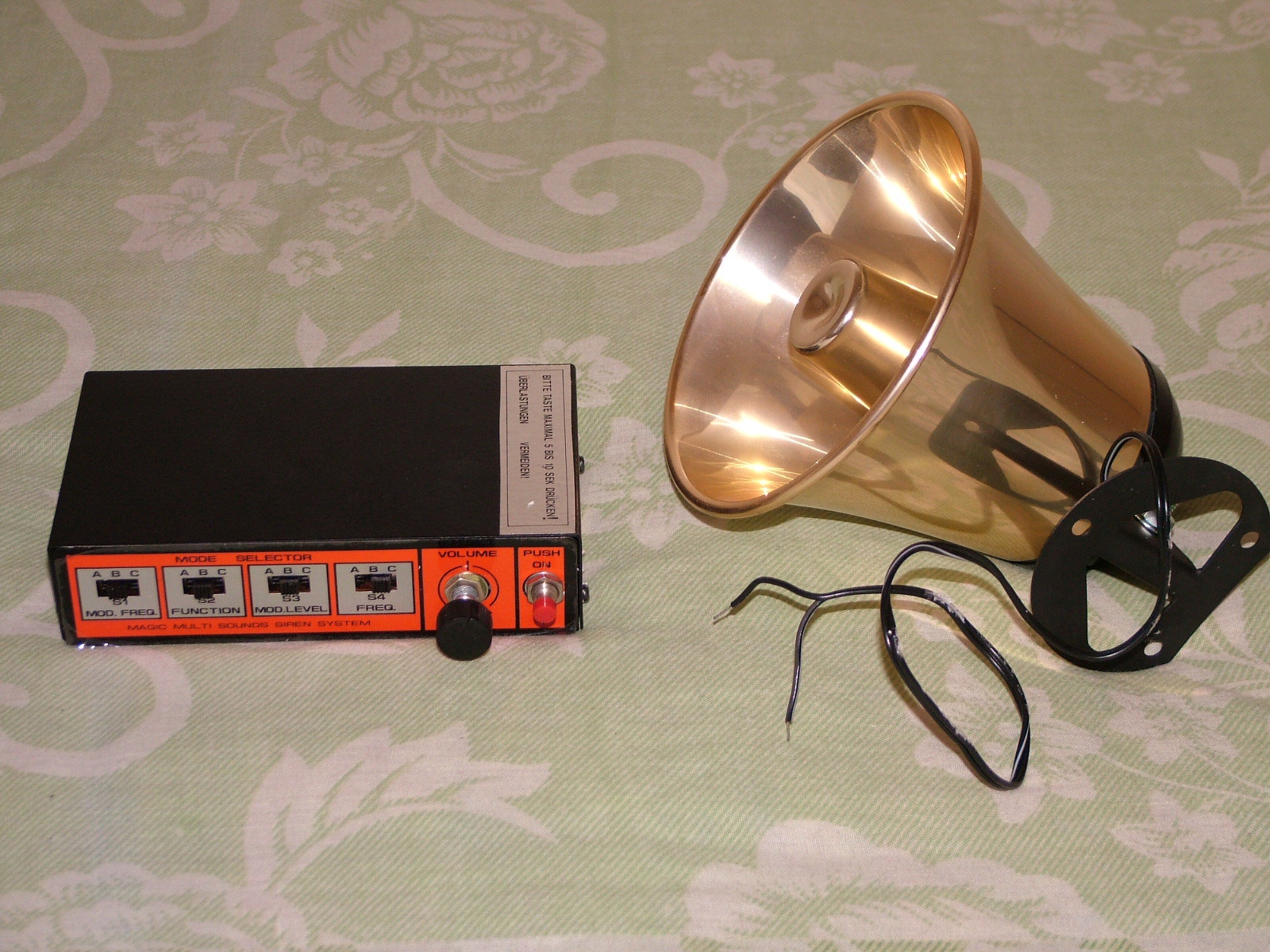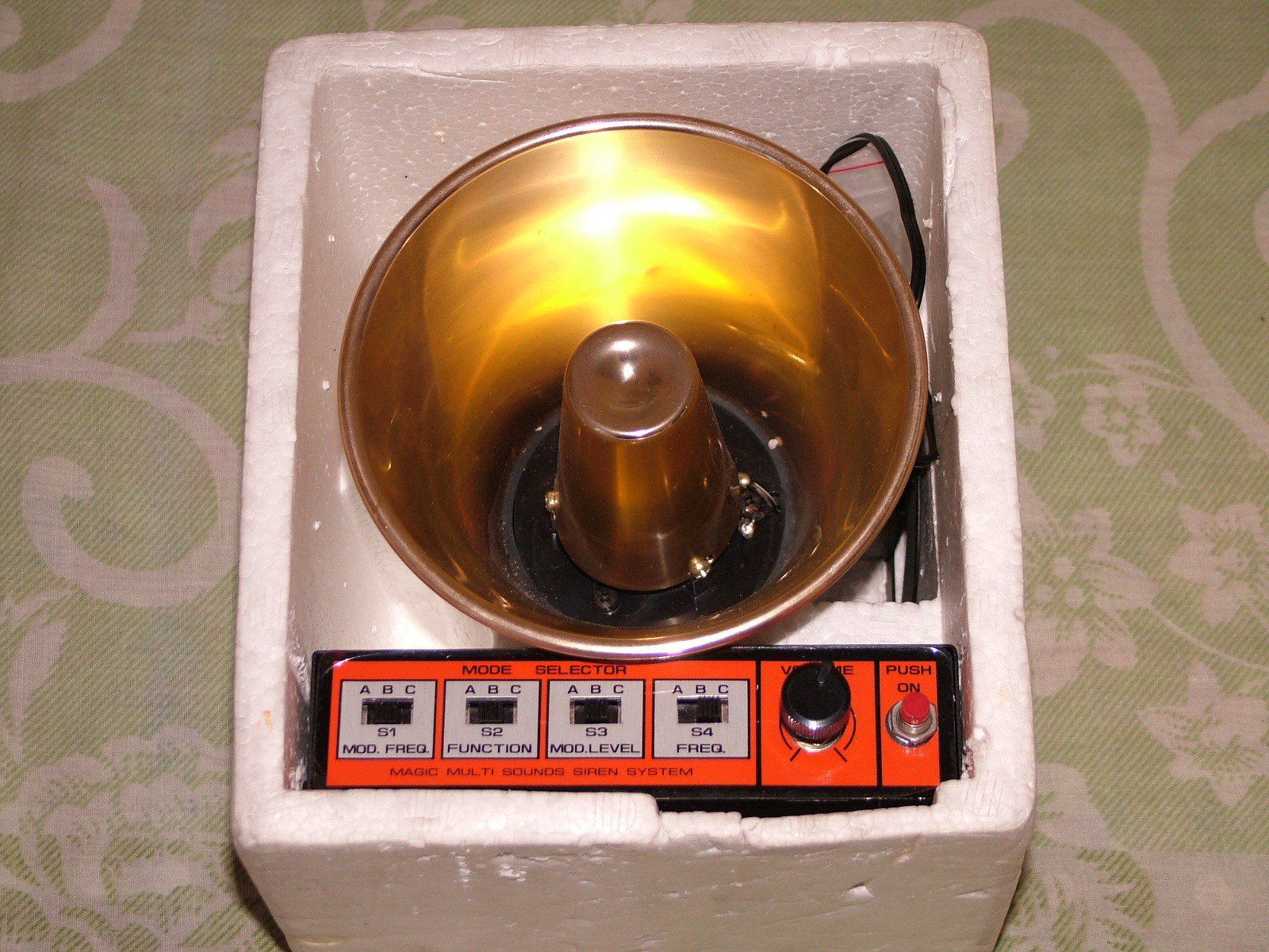 Egy sokféle hangot kiadó sziréna. De ez rá is van írva, meg még papírja is van.