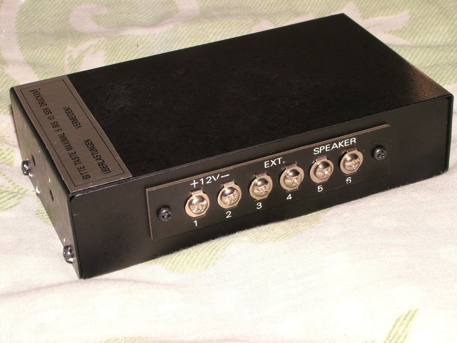 A csatlakozó felirata szerint polaritáshelyesen kell +12 V tápfeszültség, a hangsugárzót a Speaker kapcsokra. A piros nyomógombot megnyomod, és a kapcsolók és a potméter állásától függően valamilyen sziréna hangot ad. Sokat ne várj tőle, van benne 3 db NE555 és egy gyengécske végfok.