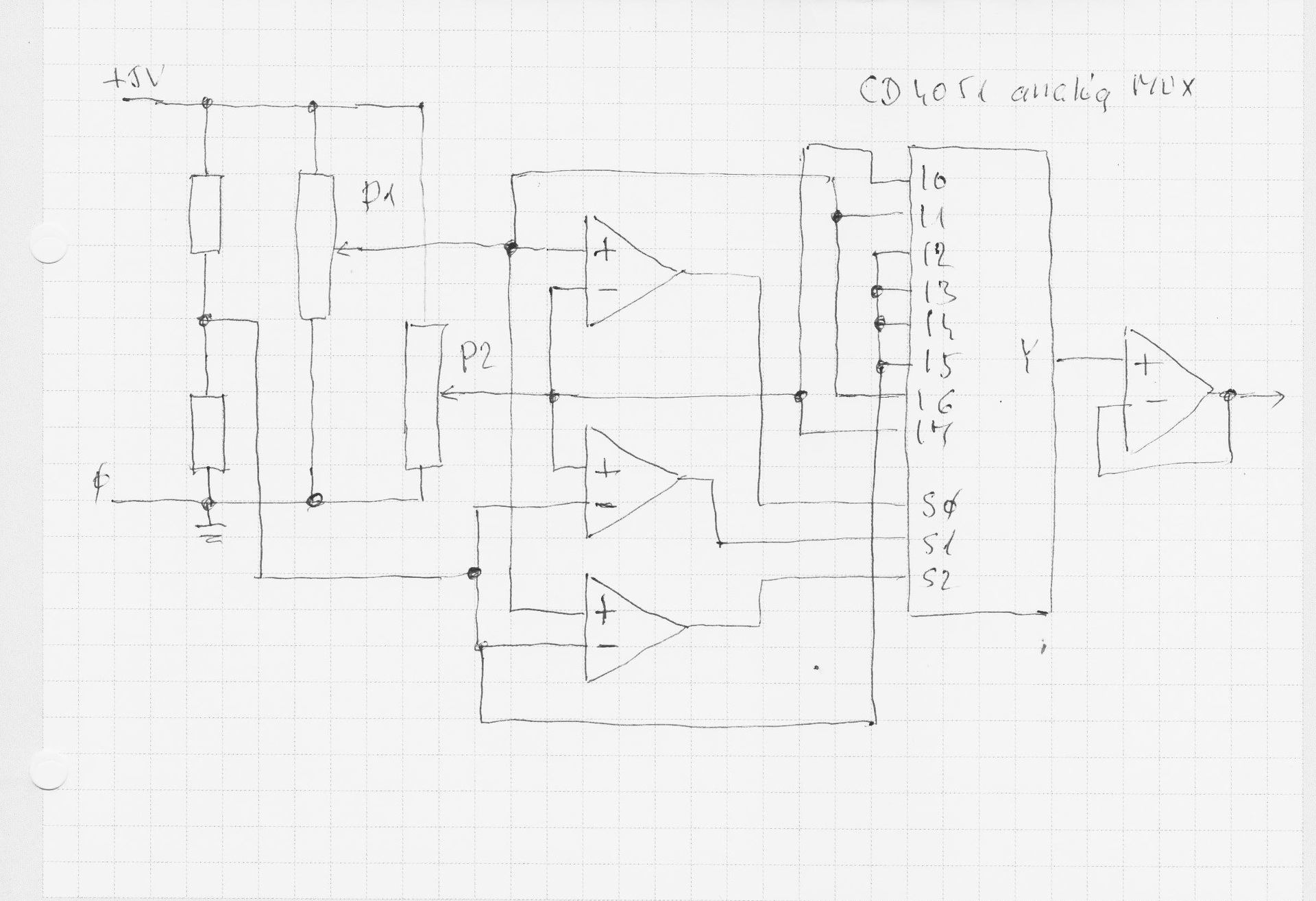 Ha jól értelmeztem a feladatot. Csak egy elvi megközelítés ha az analóg MUX még belefér
