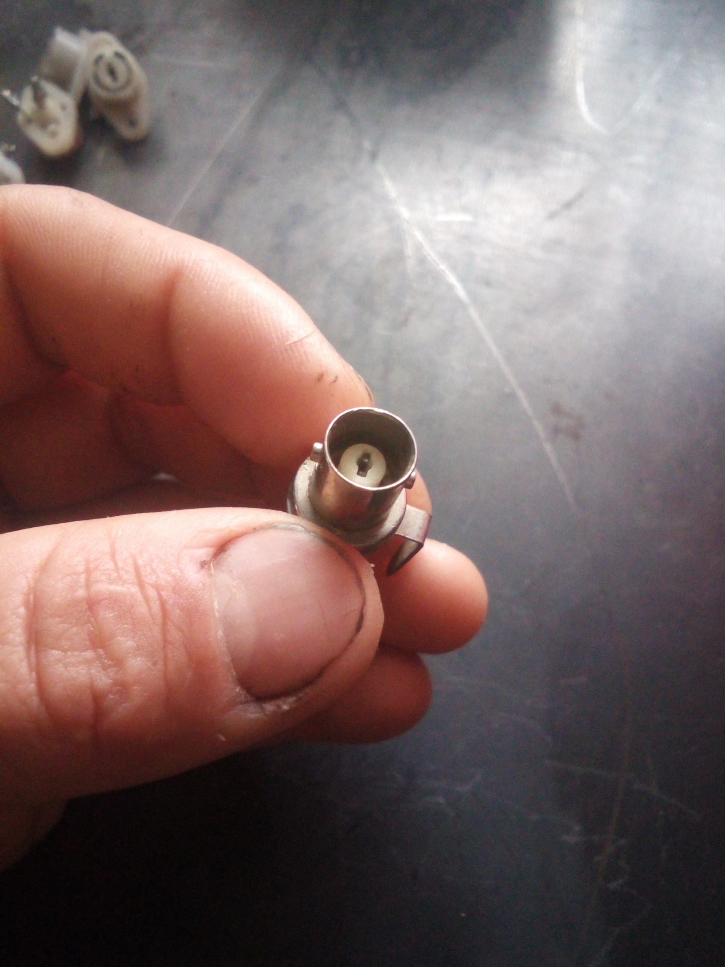 A vídeó technikában 75 ohmos koaxot használnak, az valamivel vastagabb az 50 ohmosnál, így ha ebbe 50 ohmos koaxot teszel, lötyögni fog, mert a szorító mechanika nem tudja megfogni a vékonyabb koaxot.