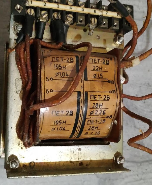 Igen sok csöves rádió tápegységében figyeltem meg én is, hogy olyan trafó, amely 110,127,220,240V ról is ment attől függően hova forgattak rajta egy gombot.Igen itt is a 6db tekercsvég megfelelő sorba kapcsolásával jöttek ki, ezek az értékek. A két vastag barna az a fütés, 6,3V , a vékony két barna ami a kép jobb oldalán van és primer tekercsnek hittem, az a szekunder nagyfeszültség kb 230V ami a csövek kell. Most már csak megfelelően sorba kell a 6 db, tekercsvégeket kötni, hogy az a 230-240V hálózati feszültséghez jó legyen.