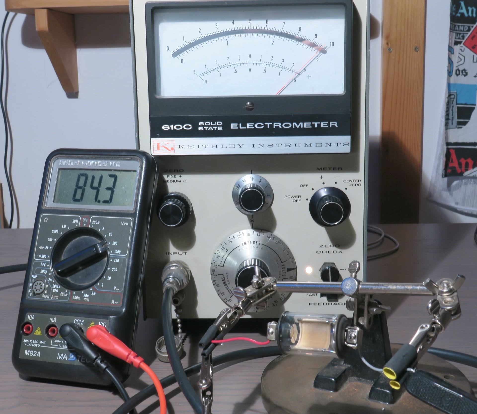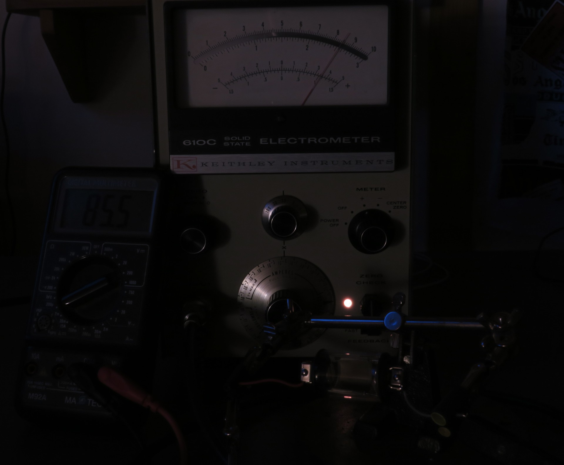 Kicsit játszottam hát vele. Elővettem legféltetebb kincsemet , egy lassan 50 éves Keithley elektrométert. Ezt mindig félve teszem mert valahogy mindig sikerül úgy tekergetnem hogy kivágódik a mutató amitől én meg éveket öregszem.
