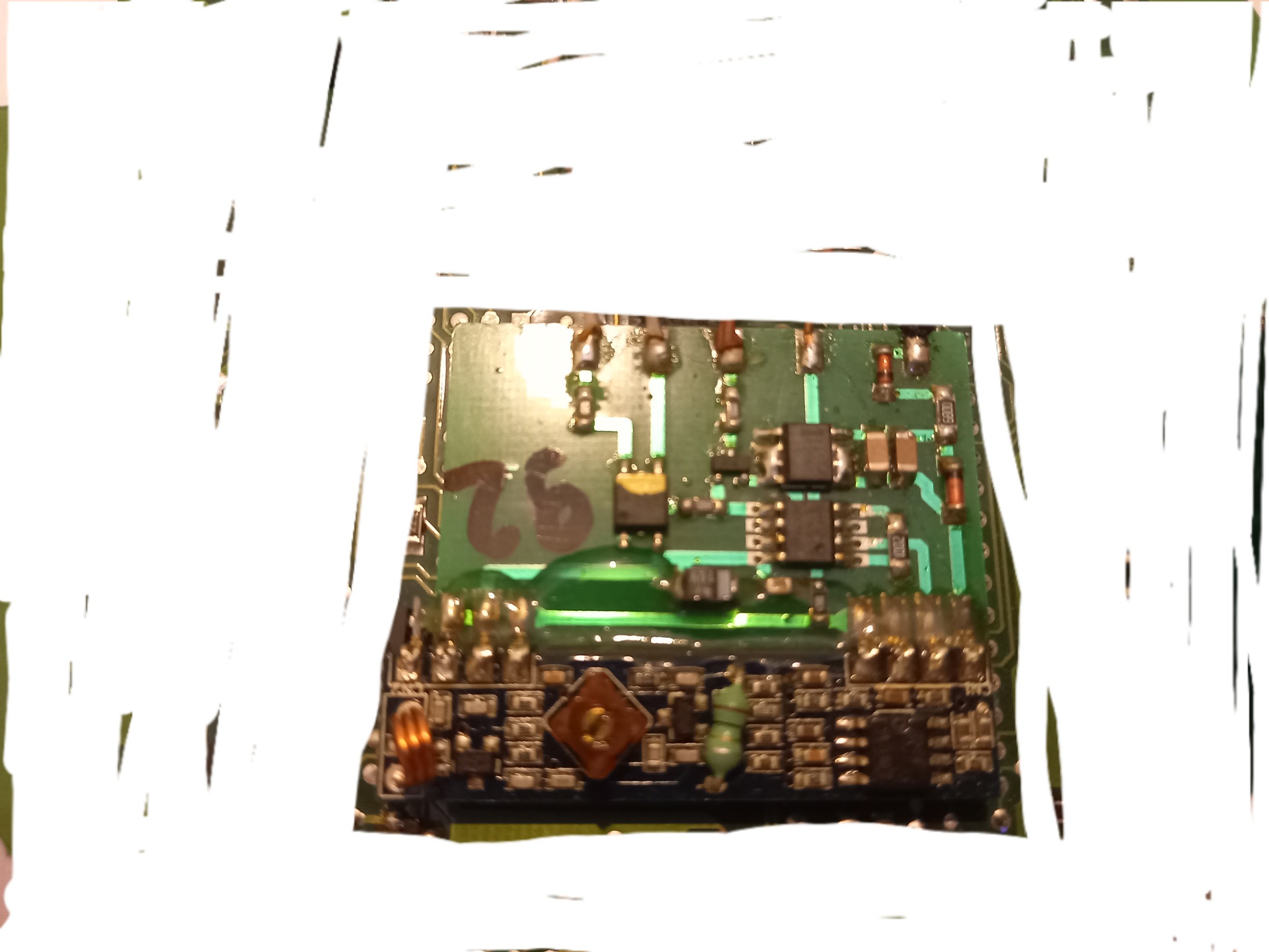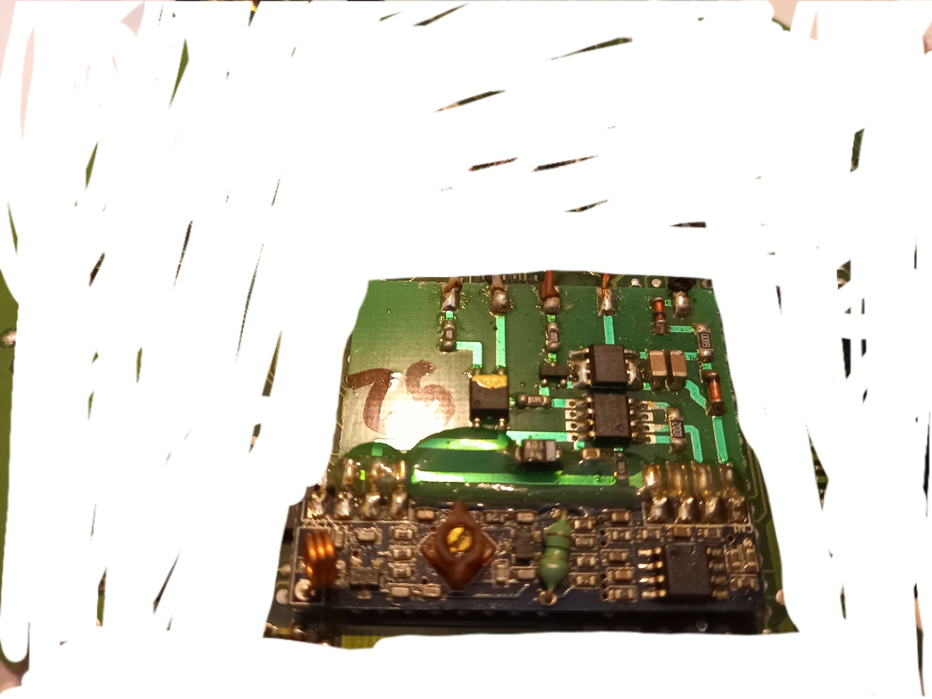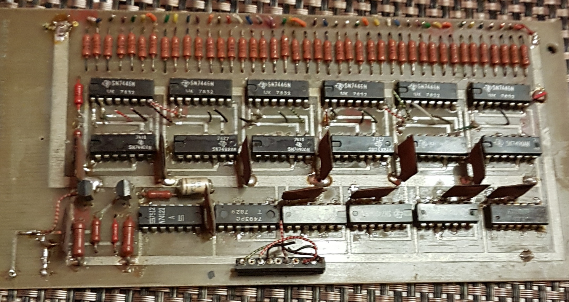 1981 digitális óra ,a panel bal oldalán volt a kristály ,jól lehet látni a három láb onnan lett levágva ,a háromból kettő összekötve.