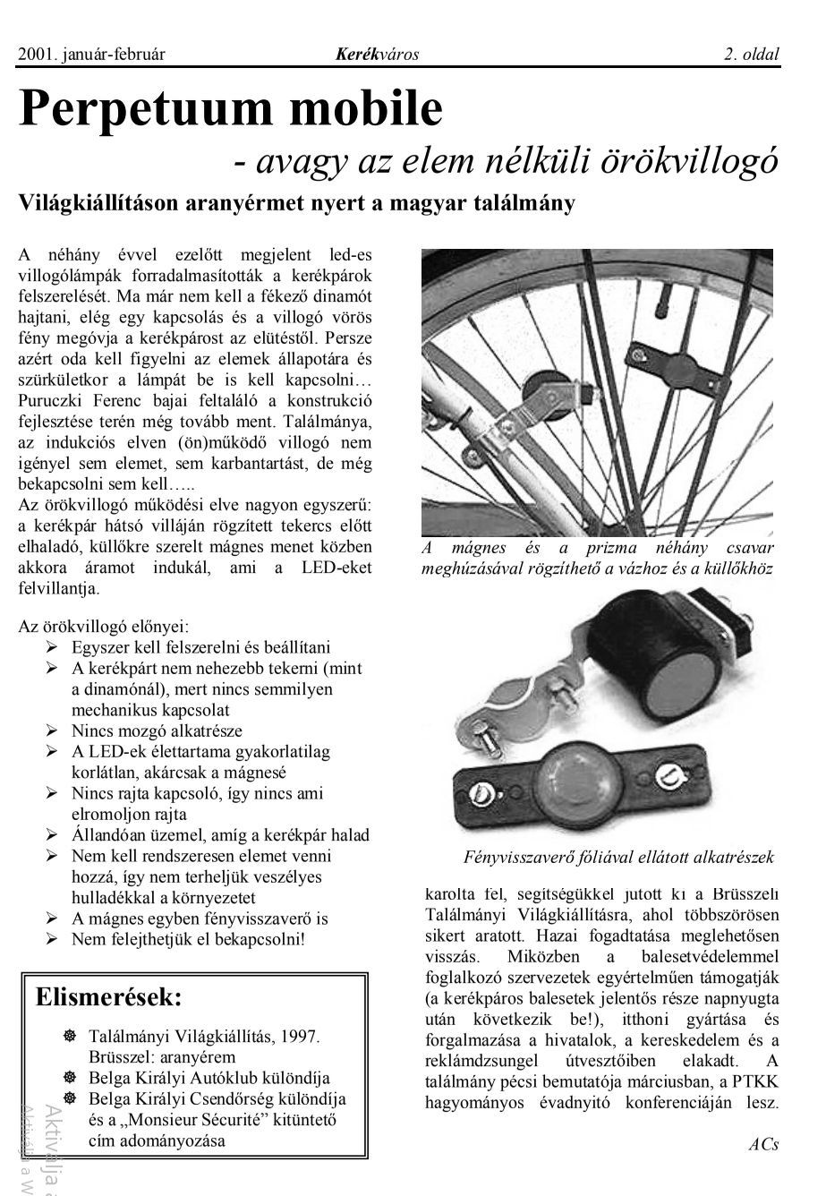 Azért lássuk be a cikkben emlegetett "nem nehezebb tekerni" ingyenenergia nem létezik, csak ugye olyan pici pár lednél a kivett teljesítmény, hogy jobbára nem lehet észrevenni. Szerintem ott vérzett el a cuccos a hivataloknál, hogy megálláskor nem világít/villog tovább, emiatt balsetveszélyes, közben meg hamis biztonságérzetet ad... Tovább kéne gondolni, pl nagyobb kondipakkot is tölteni és akkor megálláskor viríthat még egy ideig...