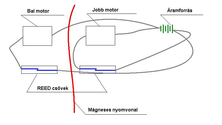 A REED csövek (ha a mágneses nyomvonal fölé érnek), megszakítják a hozzájuk tartozó motornak az áramellátását, aminek következtében az adott motor ugyebár leáll, ergo a a másik irányba fordul a jármű. Ezáltal a REED cső kikerül a mágneses hatás alól, és a motor ismét "húzni" kezd. Ha a másik irányban tér ki a jármű, akkor a másik oldalon játszódik le ugyan ez.