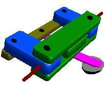 most, hogy így elővettem egy vonalzót és néztem azt a 2 cm-t ahová kell hogy ez beférjen... nem kell hogy nyák lap legyen, az vastag, ilyen kis vékony műanyagból kéne csinálni az alsó, felső zöldet. a kék meg a középső zöld lehetne vékony nyáklap (vagy bármi ~1mm vastag szilárd anyag) mert abba azért bele kell fúrni egy tengelyt. A hátsó összekötőnek(barna), a lilának is "erős" -nek kell lennie.